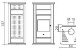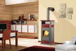 Το ατσάλινο πλαίσιο είναι η μηχανή αυτής της σόμπας που εμπλουτίζεται με κεραμική επισμαλτωμένη διακόσμηση σε δύο χρώματα, κόκκινο και κεχριμπάρι. Πλευρές, πρόσοψη βάση και εστία είναι εξολοκλήρου από μαντέμι.