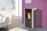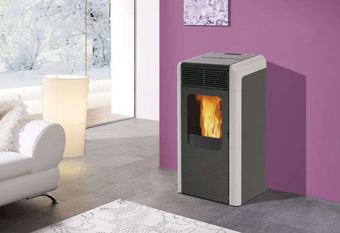 Naomyείναι σόμπα pellet πρωτότυπου σχεδιασμού με καπάκι κεκλιμένο, τροφοδοτεί τα σώματα καλοριφέρ και την ενδοδαπέδια ολόκληρης της κατοικίας.