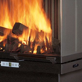 Κλειστή εστία από σκούρο γκρίζο ατσάλι.